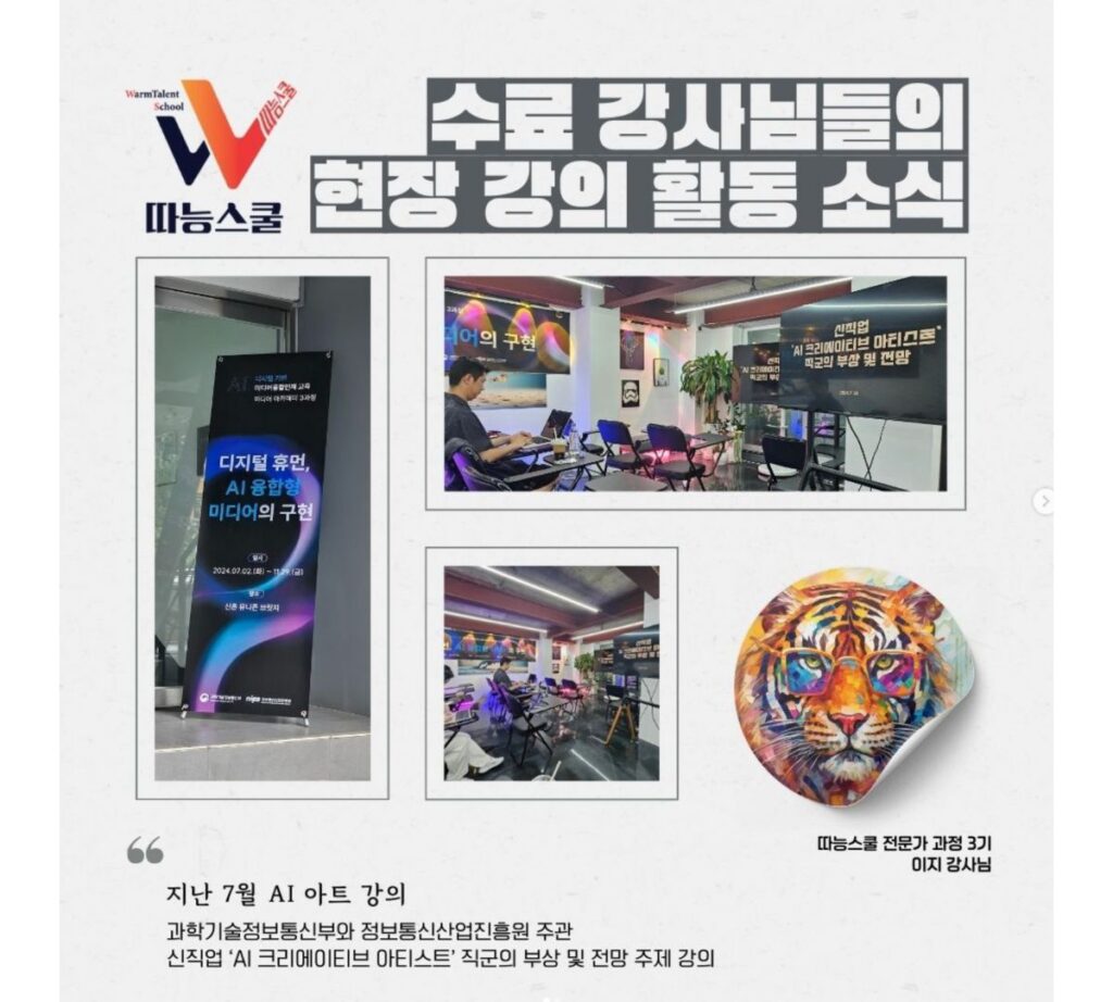 ✓ 무료 특강 기회 제공: AI 아티스트 클럽 월요 스터디·따능스쿨 수요특강 무대에서 특강 가능