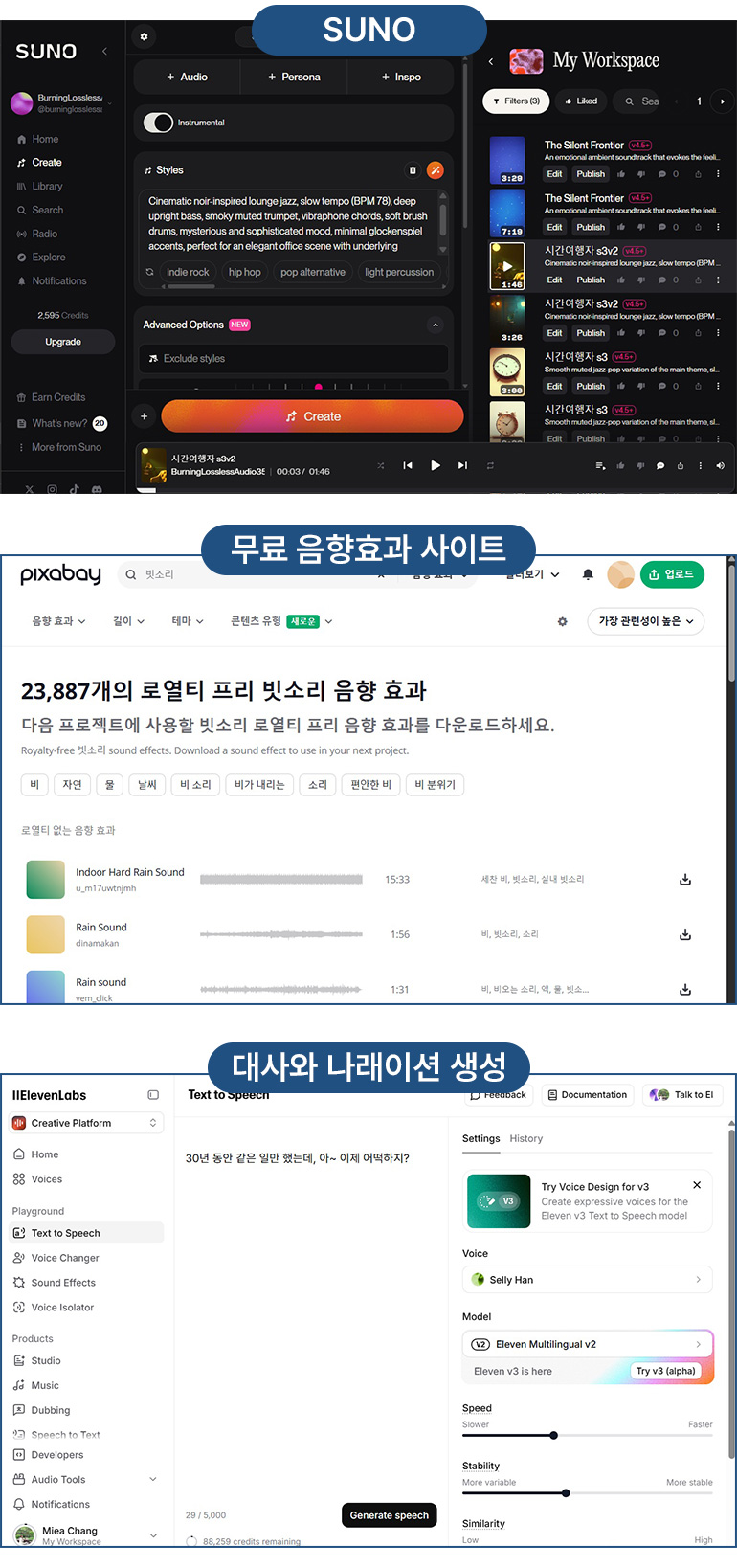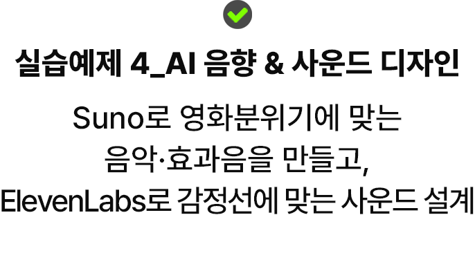 | 3차시 (3/10-화) | AI 사운드스케이프 제작 & 오디오 내러티브 디자인 “제너레이티브 뮤직과 보이스로 당신의 필름에 영혼을 불어넣으세요!” |