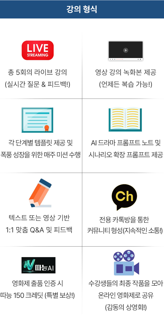 | 1차시 (2/24-화) | AI 필름메이킹 개론 & 제너레이티브 시나리오 크래프팅 “ChatGPT와 함께 당신의 스토리 아키텍처를 설계하세요!” |