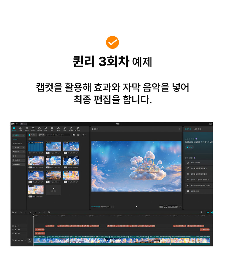 | 5차시-퀸리 (12/22-월) | 마무리 캡컷 영상 편집 |