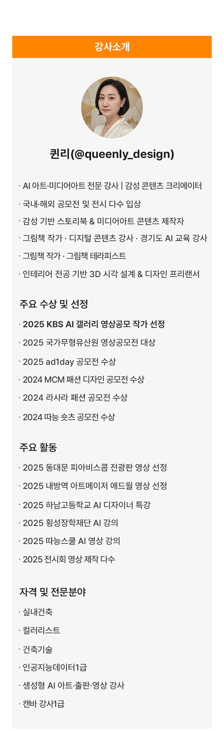 | 4차시-퀸리 (12/18-목) | 움직이는 감성, 영상으로 구현하기 KLING & 따능AI로 감성 영상 제작 |