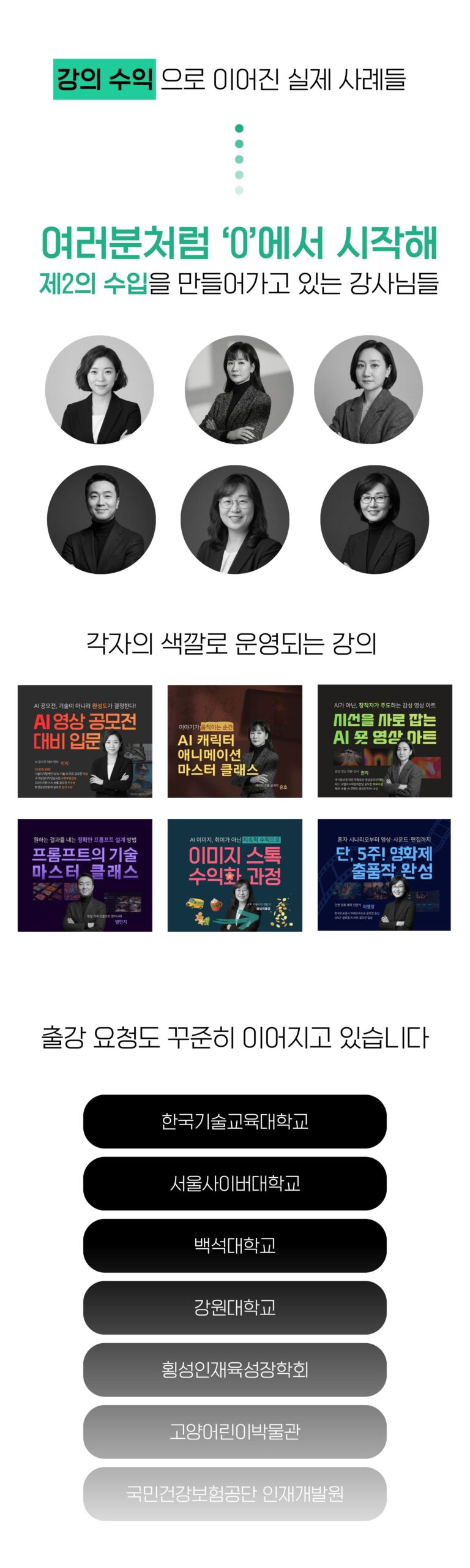 AI 이미지 생성부터 음악, 영상 제작, 수익화 전략에 이르기까지, 광범위한 주제를 다룹니다.