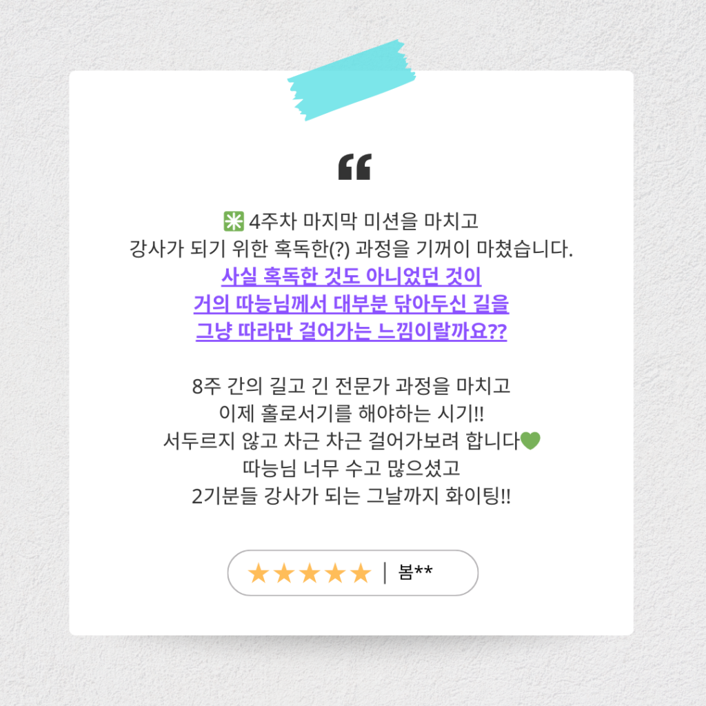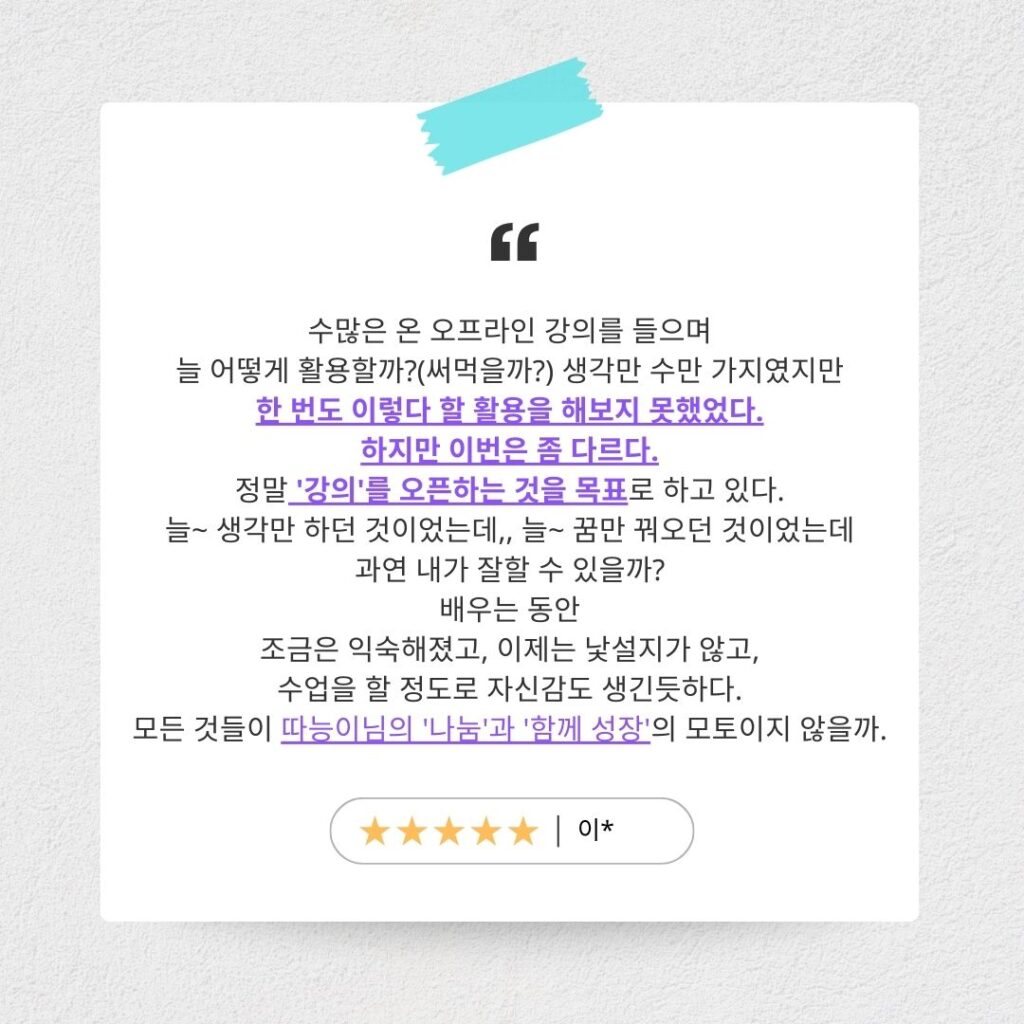 - 💰 매주 미션 + 후기 작성 완료 시 따능스쿨 10,000원 할인 쿠폰 제공 💰