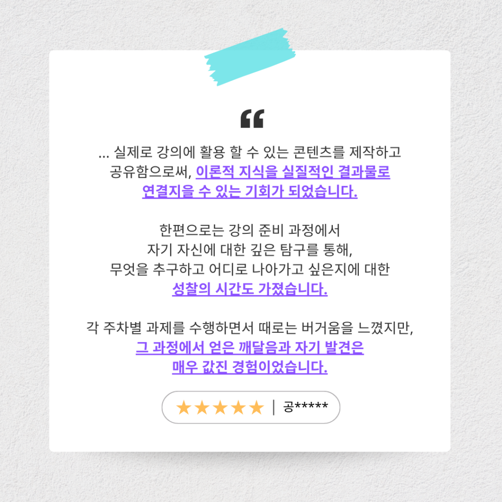 - 강의에 최신 정보를 효과적으로 적용하여 시간 절약과 강의 질 향상을 기대할 수 있습니다.