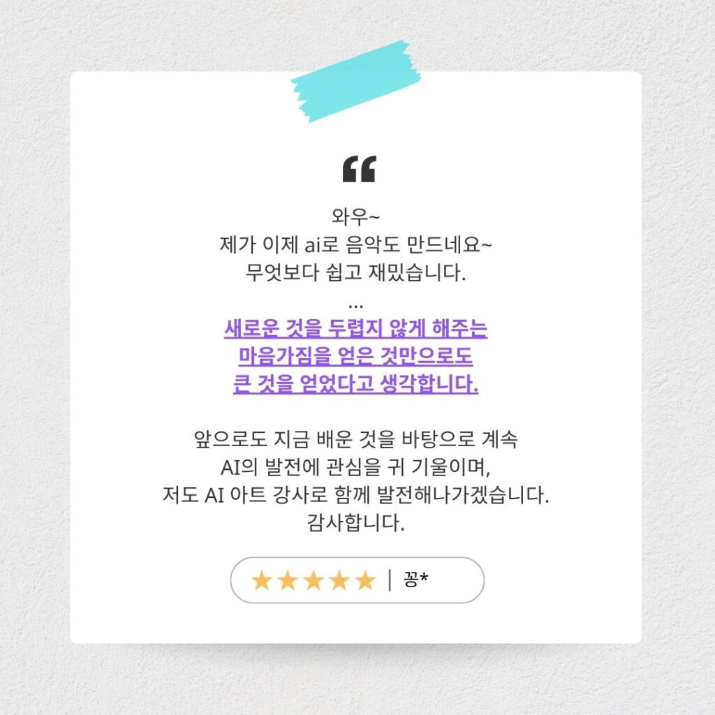 - 최신 AI 아트 트렌드와 기술을 한 번에 습득할 수 있습니다.