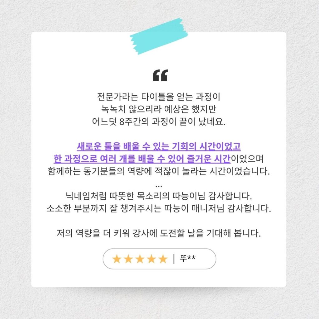 과정을 수료한 후에는 따능스쿨에서 공식 강사로 지원하실 수 있는 기회가 제공됩니다.