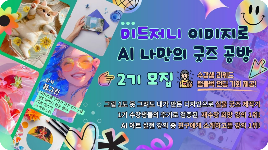 - AI 아트 강의 누적 수강생 2,000명이 넘는 따능이에게 빠른 답변을 받을 수 있습니다.
