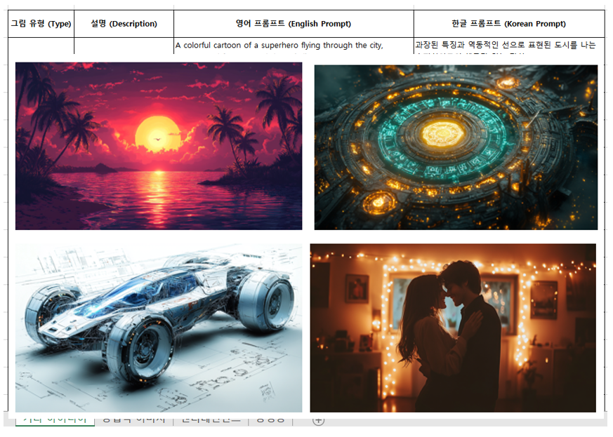 | 3주차 (5/16-토) | 프롬프트 구성 요소의 혼합+사고 확장 Brush, 예술 사조 , 작화 유형, 프롬프트 판매 준비 |